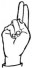 На ћирилици написано АНДРЕЈ ЦМИЉАНИЋ састоји се из 14 слова [?]. Исписано ћириличном једноручном азбуком за глувонеме: